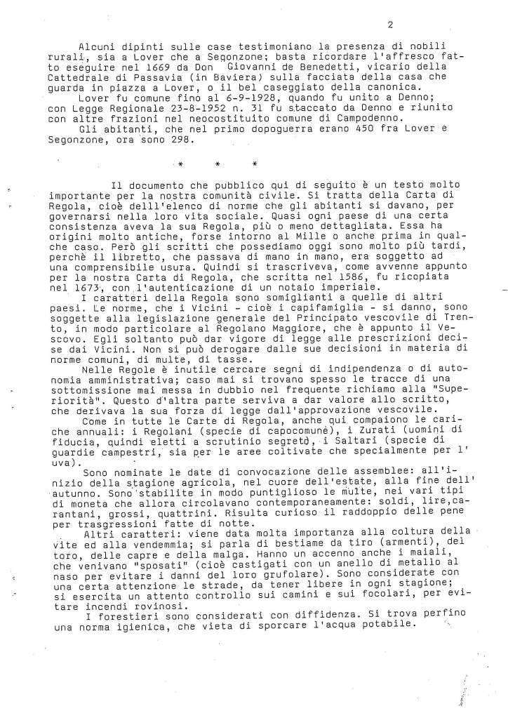 “Lover e Segonzone sono insediamenti abitati in tempi molto antichi. Lo stanziamento di popolazione è stato favorito dalla buona esposizione al sole“….